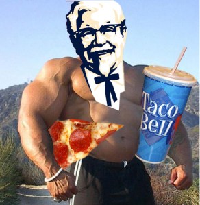 I went into a Pizza Hut the other day that used to be a sit-down restaurant 10 years ago. Now, not only is it mainly a carryout spot, but it has KFC and Taco Bell as well. I don’t know what genius decided customers may want pizza…then maybe some fried chicken and a taco too…and then they decided to make ‘em all name brand, but now our world has become a reflection of these fast-food conjunctions.